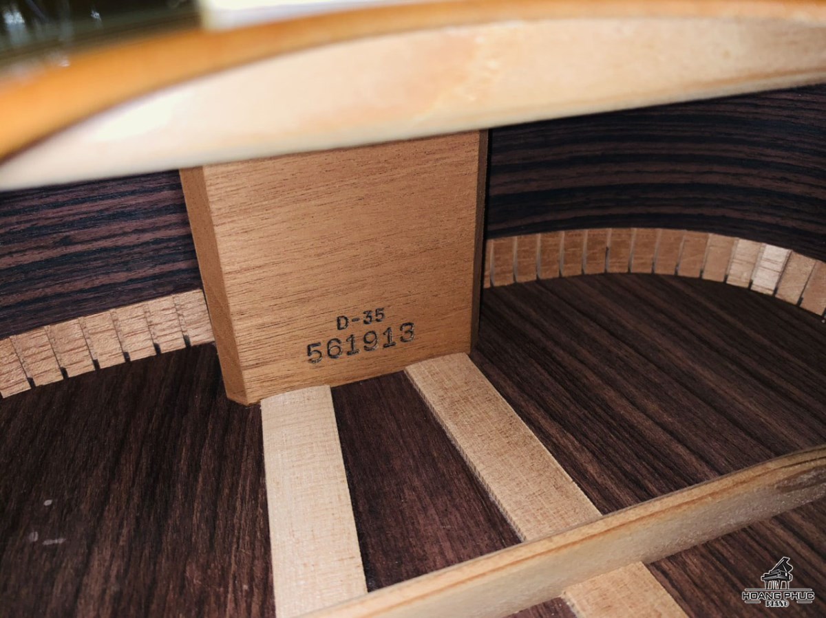 Bên trong thân đàn, bạn sẽ thấy khung sườn dạng chữ X không theo cấu trúc vỏ sò của Martin. Không giống như D-28, D-35 sử dụng thanh trụ mỏng hơn. Các dải gỗ nhỏ giúp âm bass mạnh mẽ hơn. Điều đó làm cho D-35 trở thành một lựa chọn nổi bật để đánh bại các mẫu khác và giúp cho đàn thêm độ cộng hưởng.
