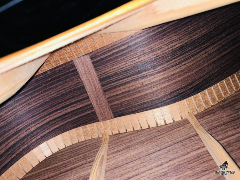Có lẽ tính năng nổi bật nhất trên cây đàn này là mặt sau bằng Cẩm Ấn 3 miếng. Được lắp ráp theo mô hình tam giác, đây chắc chắn là một thiết kế độc đáo! Cần đàn được làm bằng gỗ cứng chọn lọc (thường là gỗ Gụ hoặc gỗ Tuyết Tùng Tây Ban Nha) và trên cùng là một bàn phím gỗ Mun mịn. Thùng đàn hình dạng hình bầu dục thấp, với Martin bo và tạo độ cong để giúp bạn di chuyển xung quanh cần đàn một cách dễ dàng.